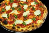 Italian tomatoes, Italian pepperoni, red onions, shaved Parmigiano Reggiano, virgin olive oil, and Wisconsin whole milk mozzarella.
